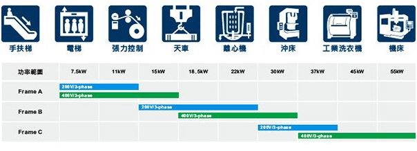 大慣量負載:離心機、工業洗衣機、粉碎機、龍門型工具機…等