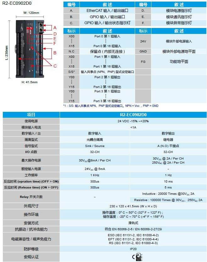 32 通道數字輸入 / 32 通道數字輸出遠程模塊 – R2-EC0902D0